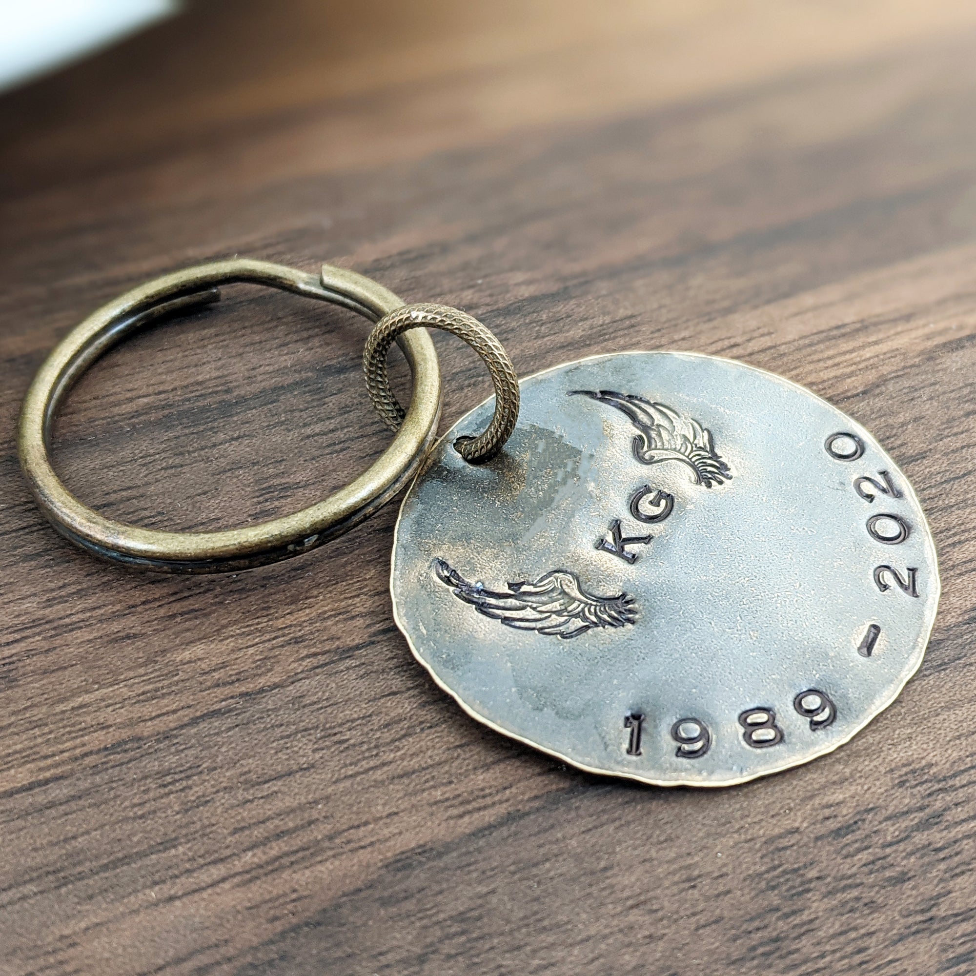 * This Keychain will come with WINGS on top INITIALS in center and DATES on the bottom unless specified *