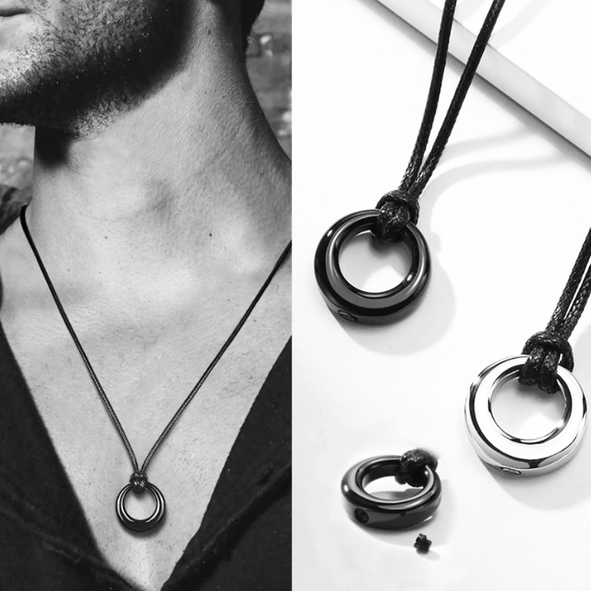 Black Cremation Washer Urn Necklace